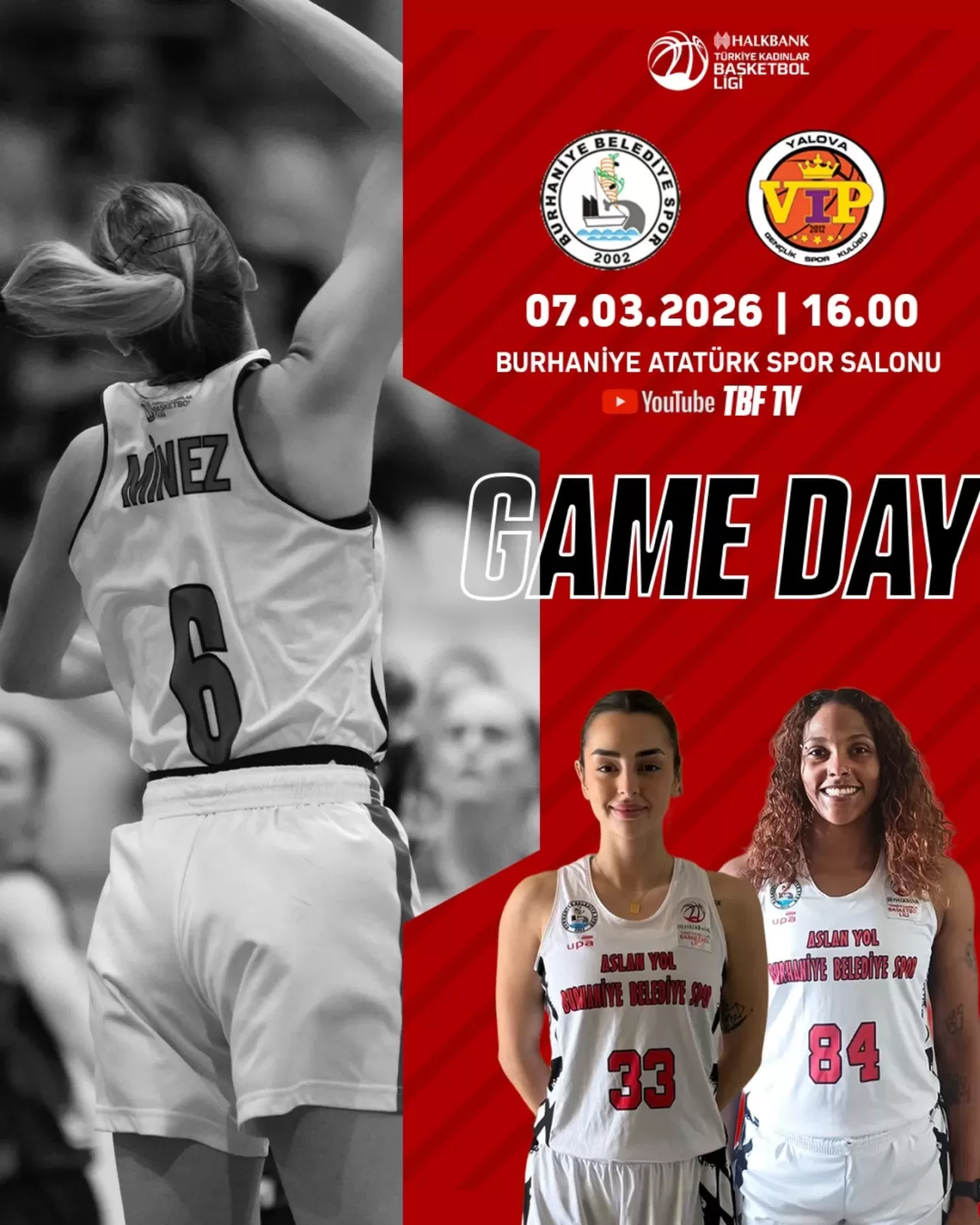 Maç, saat 16.00'da başlayacak. Basketbolseverler, bu heyecanlı mücadeleyi TBF'nin resmi YouTube kanalı olan TBF TV'den canlı olarak takip edebilecek.